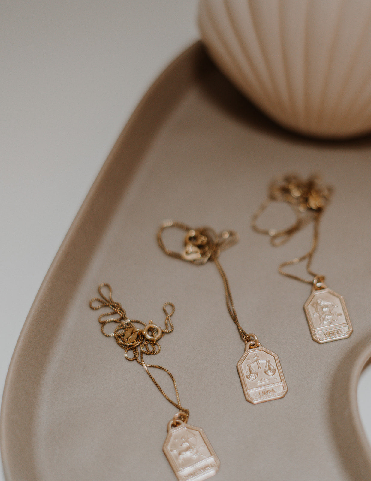 Prepare to be enamored. A unique twist on a medallion featuring your zodiac symbol and name. This isn't your typical medallion necklace!