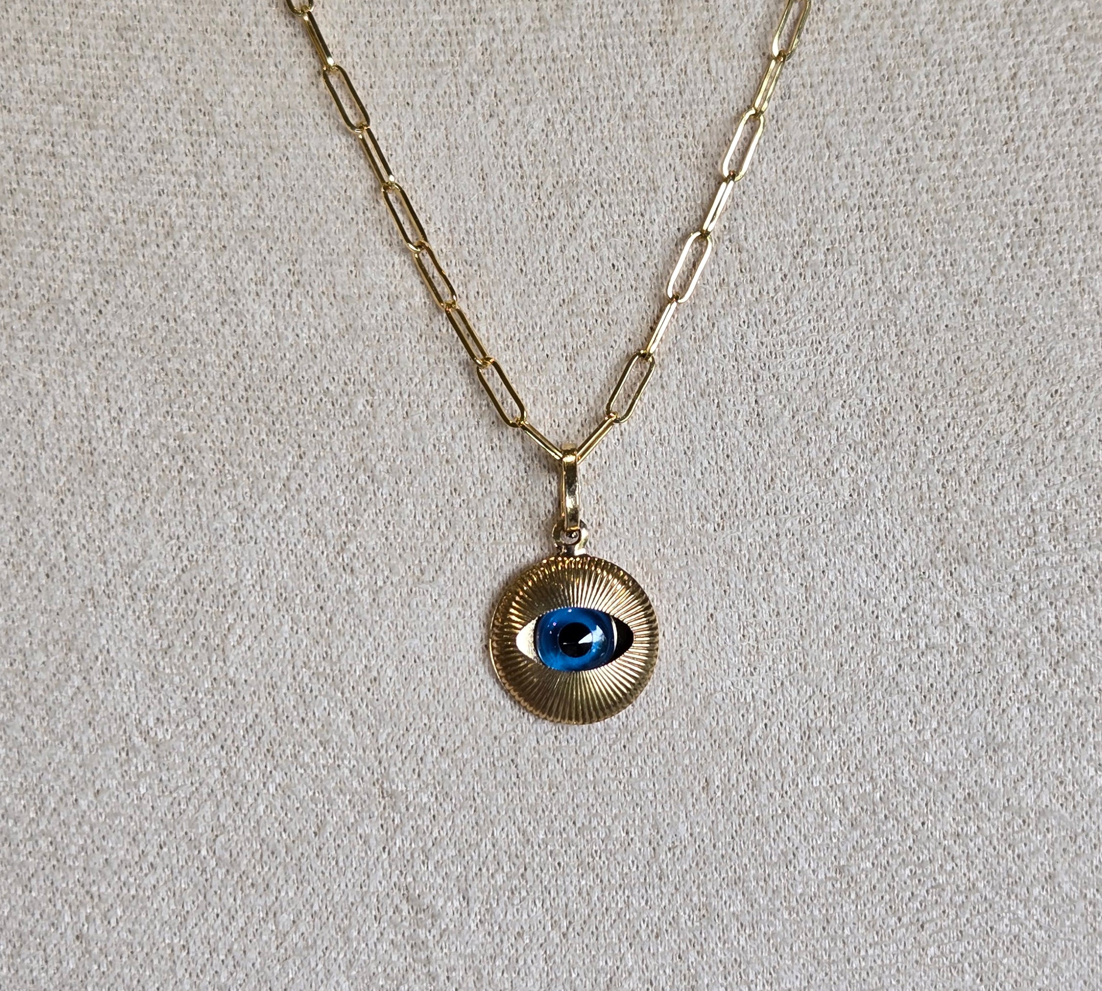 Blue Stone Evil Eye-Lash Pendant | 10k gold