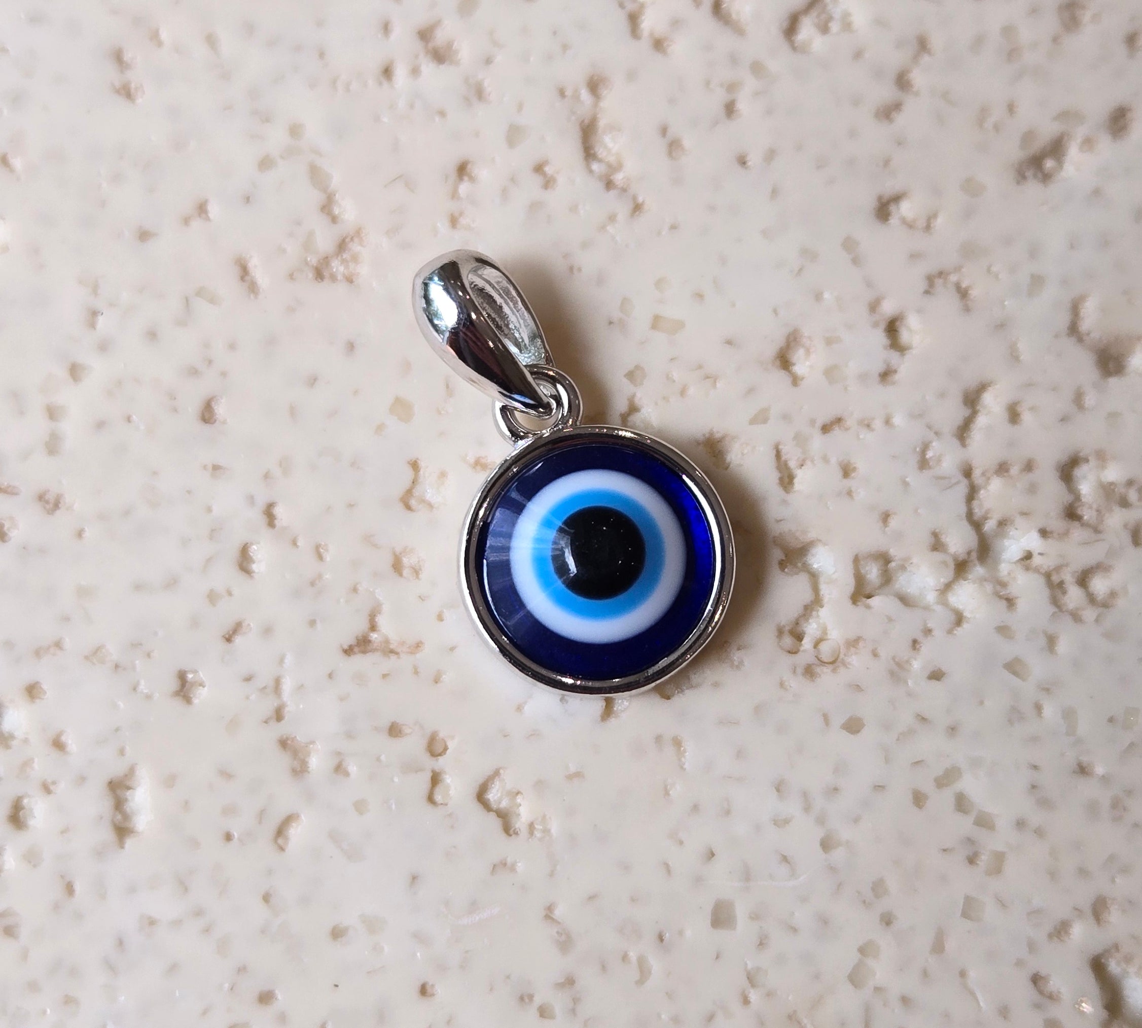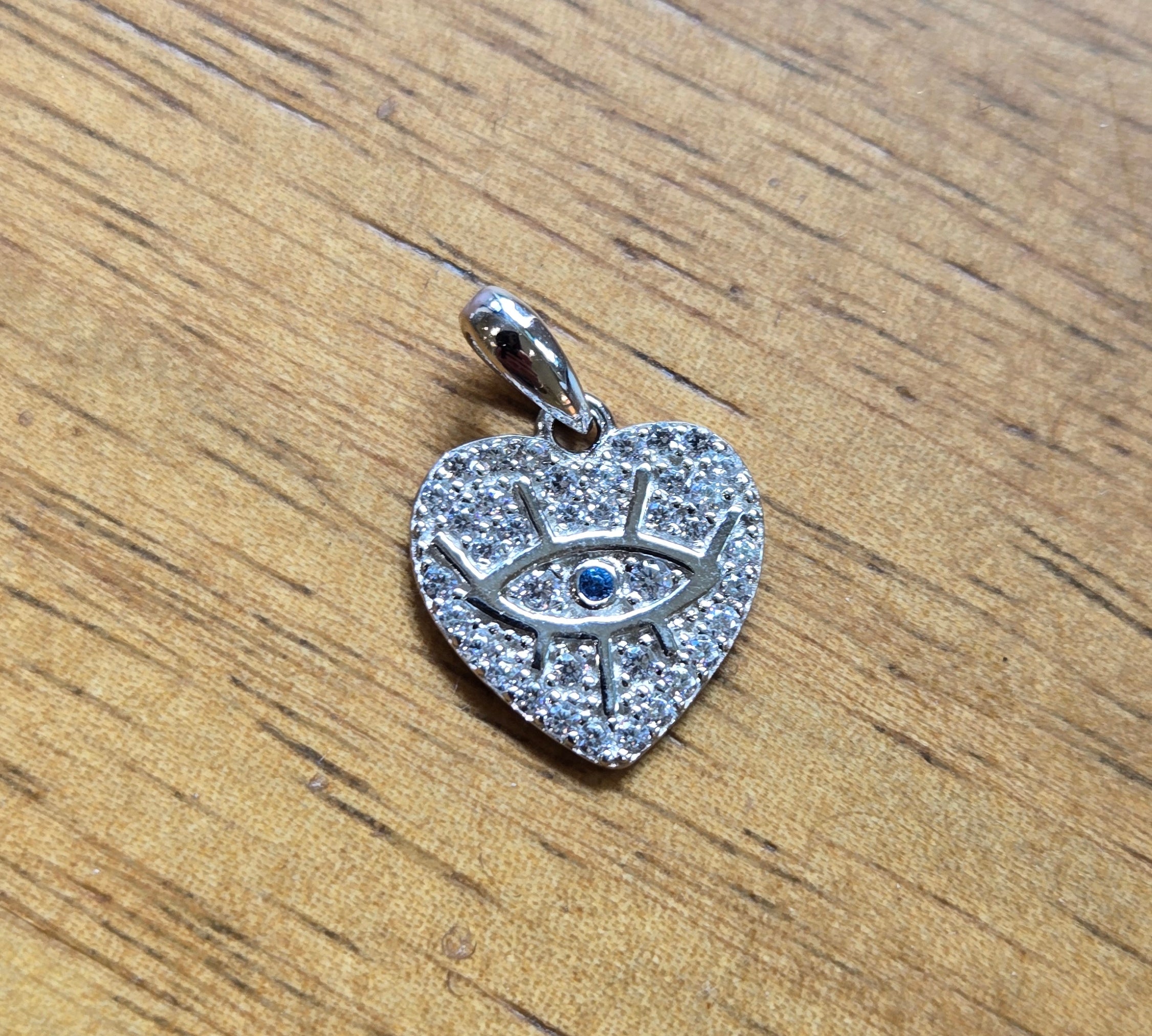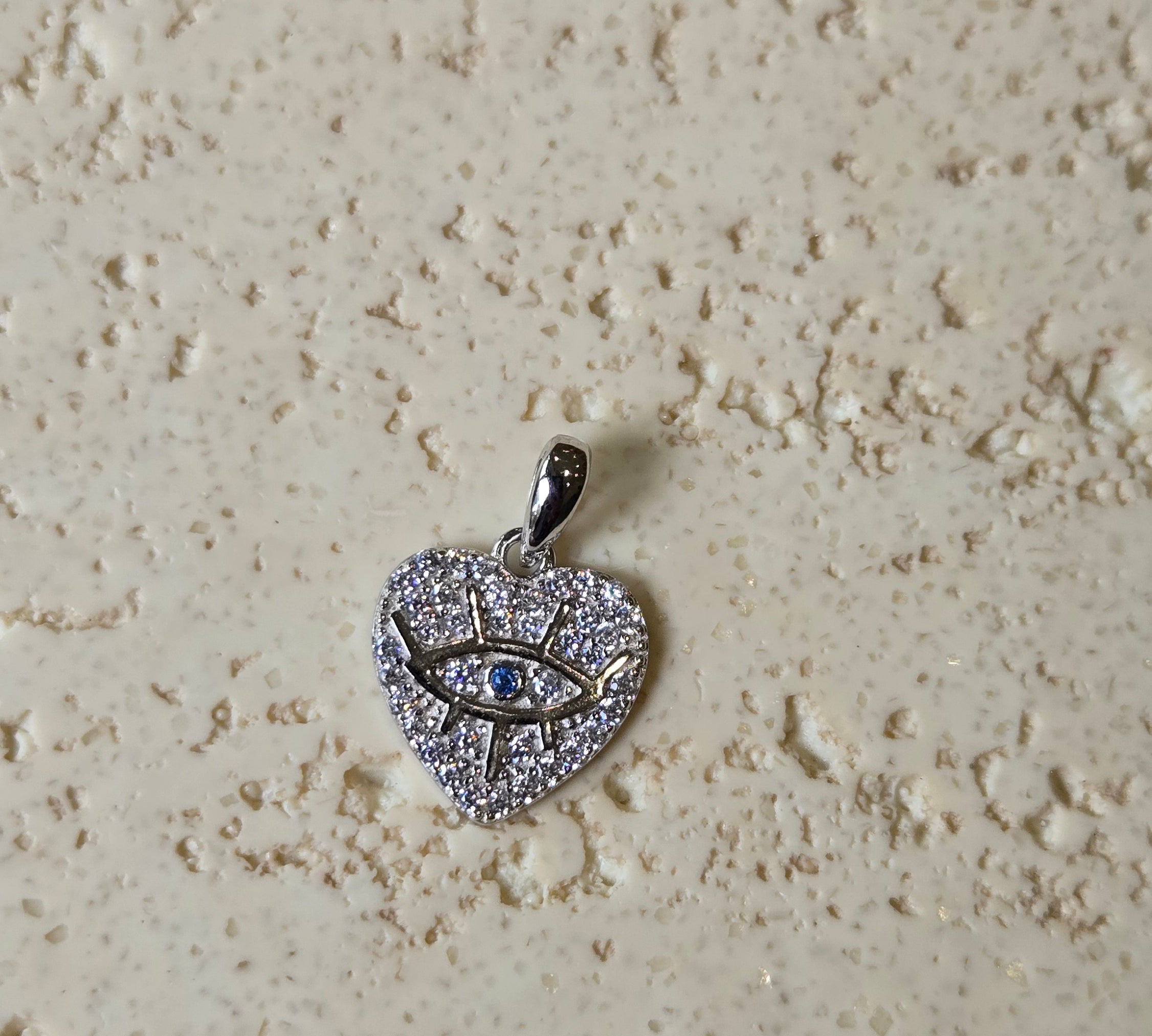 Evil Eye Heart-Shaped Sterling Silver Pendant with CZ