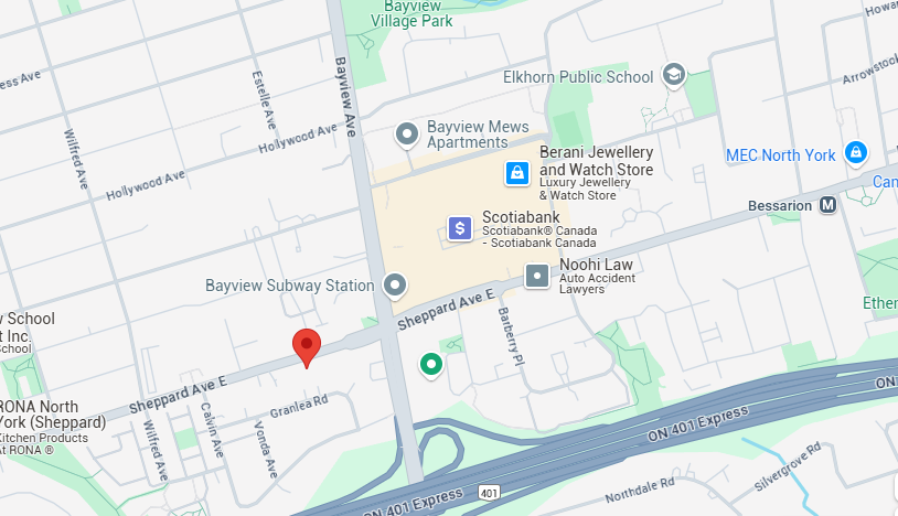 Our new space is located in the Bayview and Sheppard Ave. Centrally located just off the 401, with plenty of free parking.