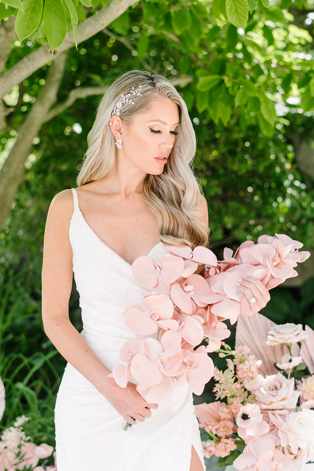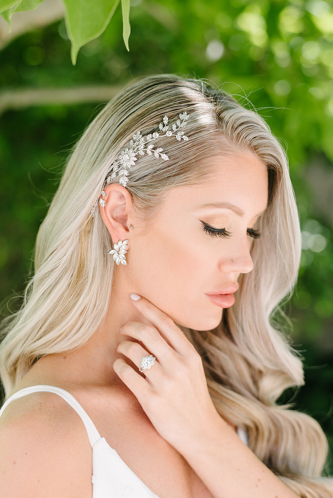 The perfect comb to accompany any bridal or special occasion hairstyle. Made from cubic zirconia, it's quite versatile in terms of placement. It's featured here won on the side with loose cascading waves.