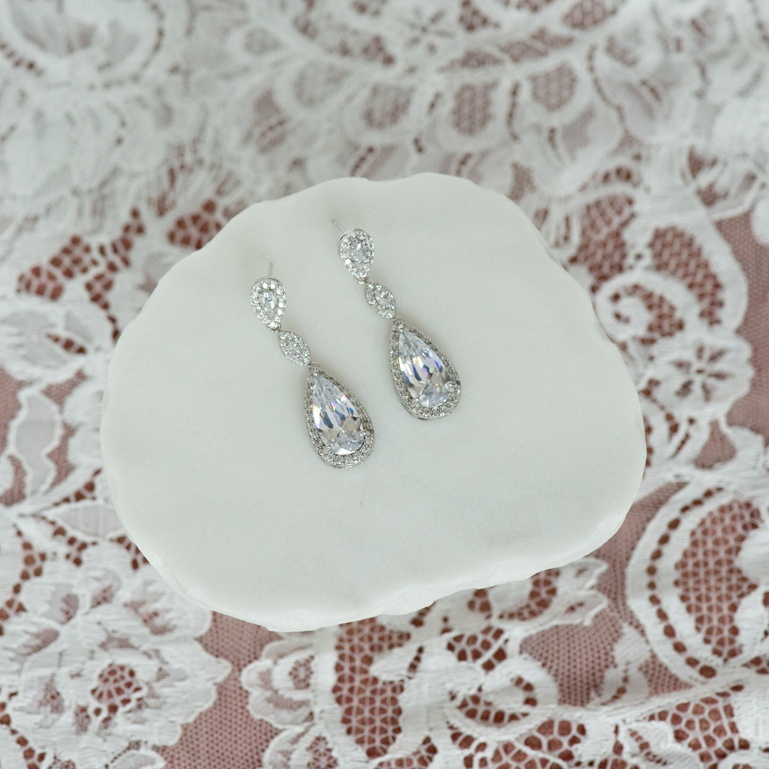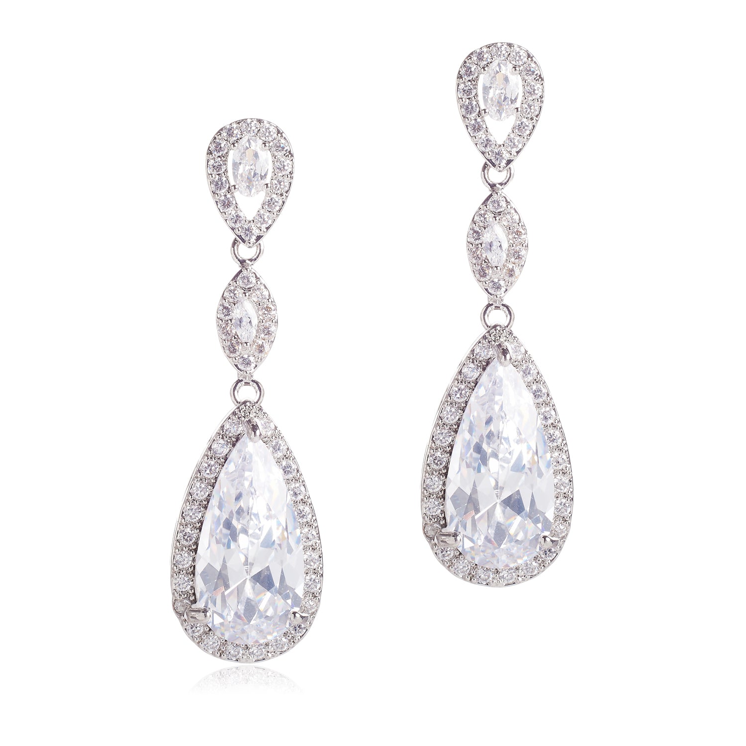 These stunning cubic zirconia earrings are perfect for any wedding, prom or special occasion. The have a brilliant sparkle from the cubic zirconia stones with a gorgeous tear drop shape.