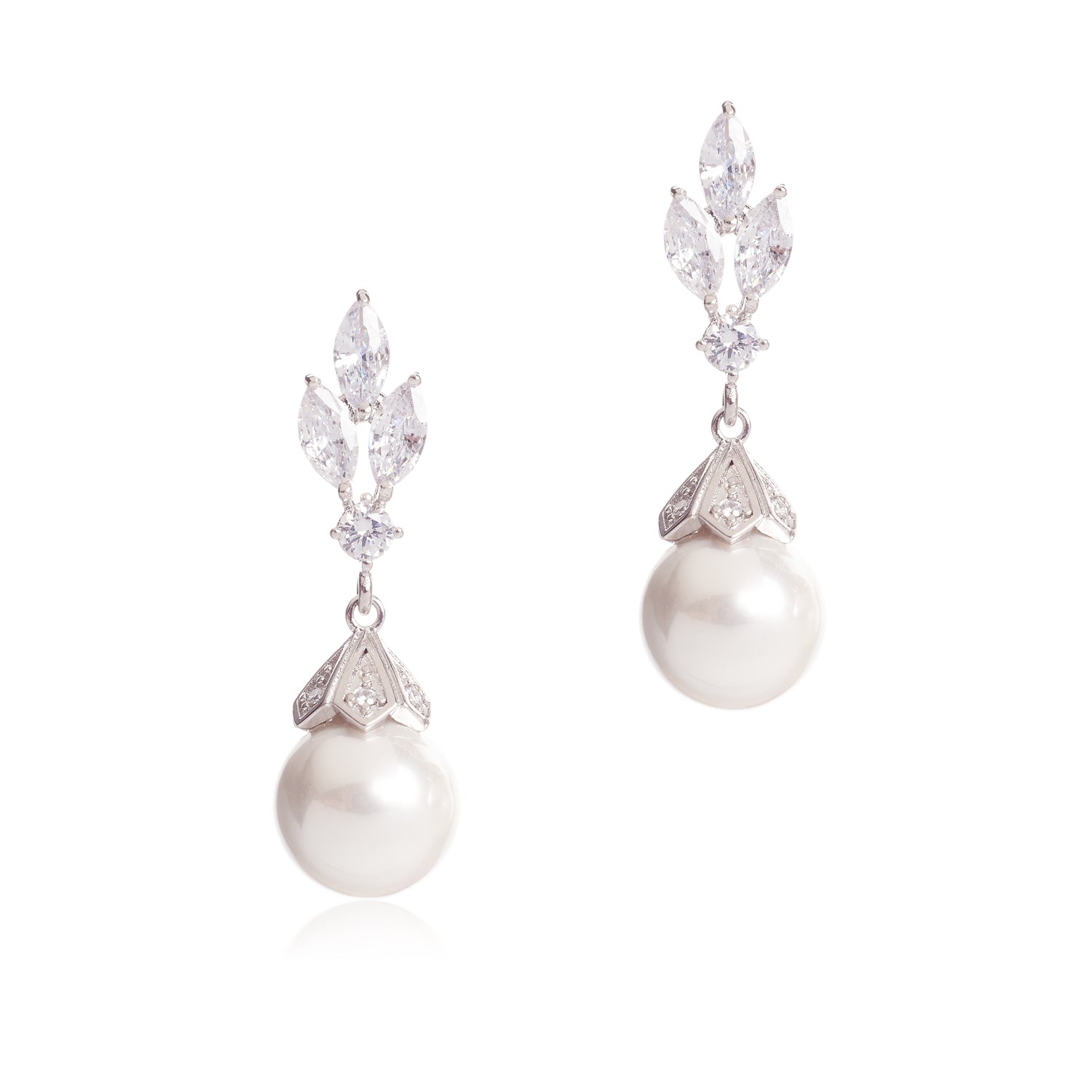 A touch of class with a subtle pearl drop. Feminine and elegant for your special occasion. Made with cubic zirconia and faux pearls