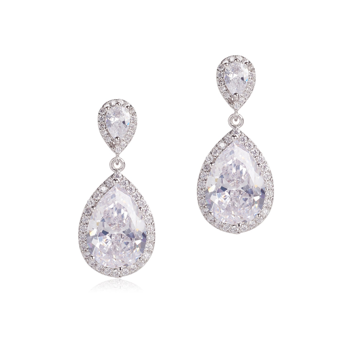 cubic zirconia stones, and framed ovals. Similar to our Serra earrings, but with some added sparkle and shine. They have a luxe look and feel that would compliment any bride on her wedding day.