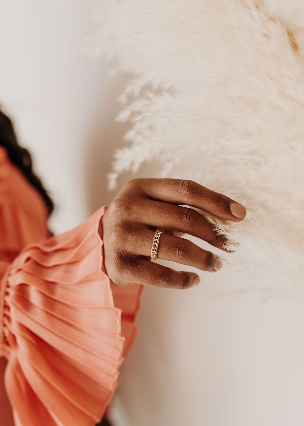 All you ring dreams will come to life with this incredibly unique curb chain ring. An essential piece for any ring lover to add to their collection.  Just that perfect touch of class and sophistication! Ring on model is 4.2 mm