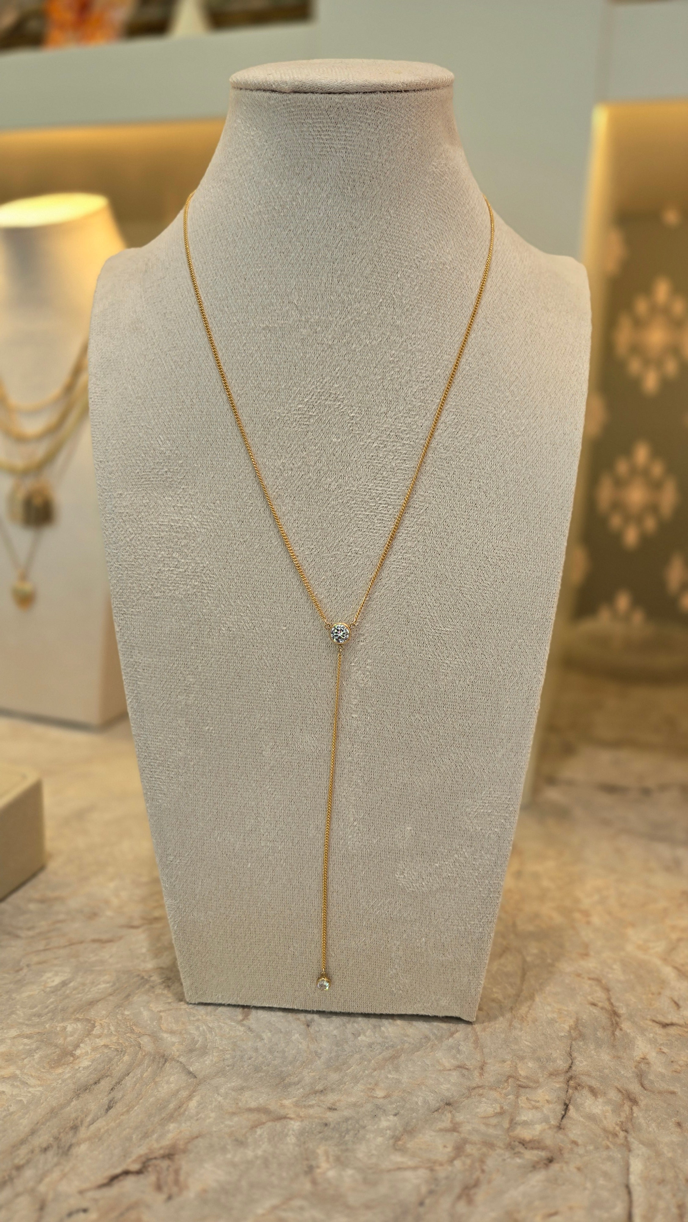 Our Gold-Filled CZ Lariat Necklace features sparkling cubic zirconia accents along a sleek lariat design, perfect for layering or wearing solo. Lightweight and chic, it adds a touch of modern sophistication to any outfit.
