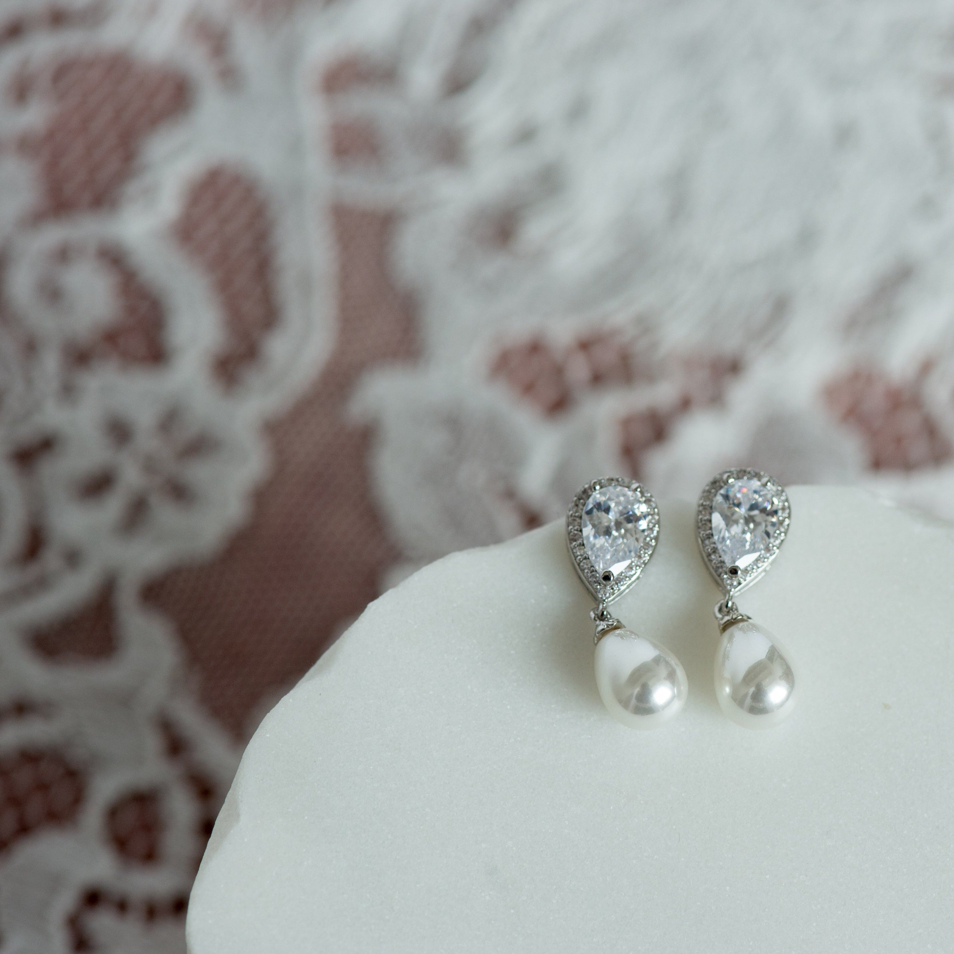 This classic pearl and teardrop cubic zirconia earring is simple yet elegant and can also be enjoyed well after the wedding day.