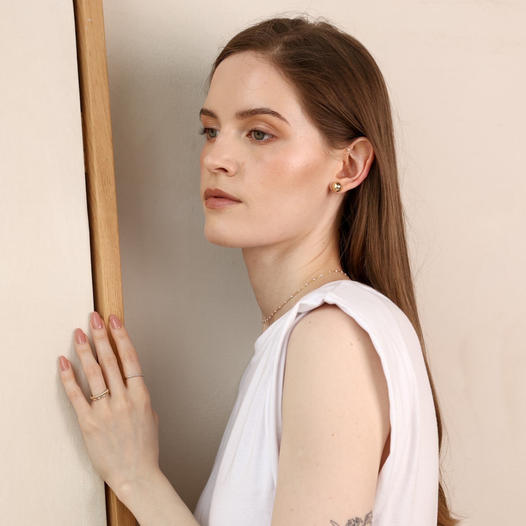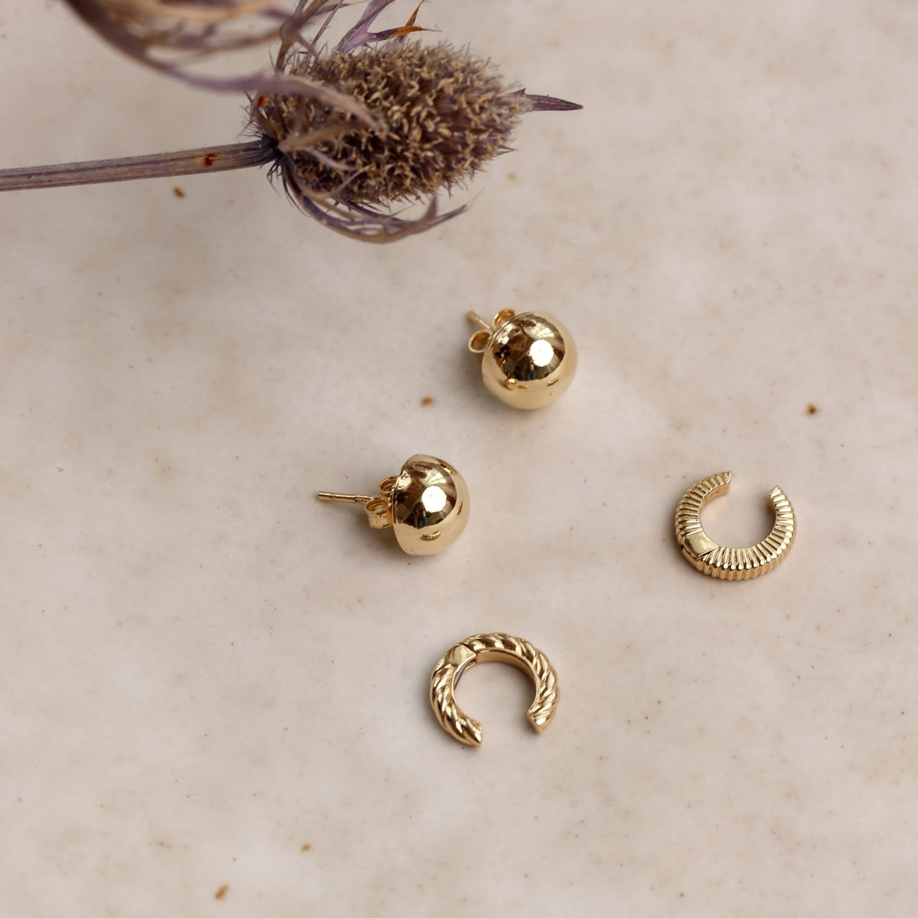 Experience the refined charm of our Gold Dome Stud Earrings, designed to radiate luxury and appeal to all generations. These stunning earrings feature a smooth, polished dome shape that catches the light beautifully, adding a touch of refined allure to any ensemble.