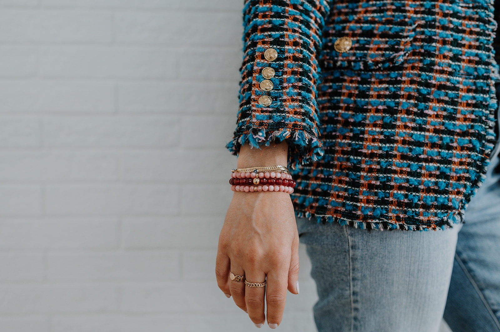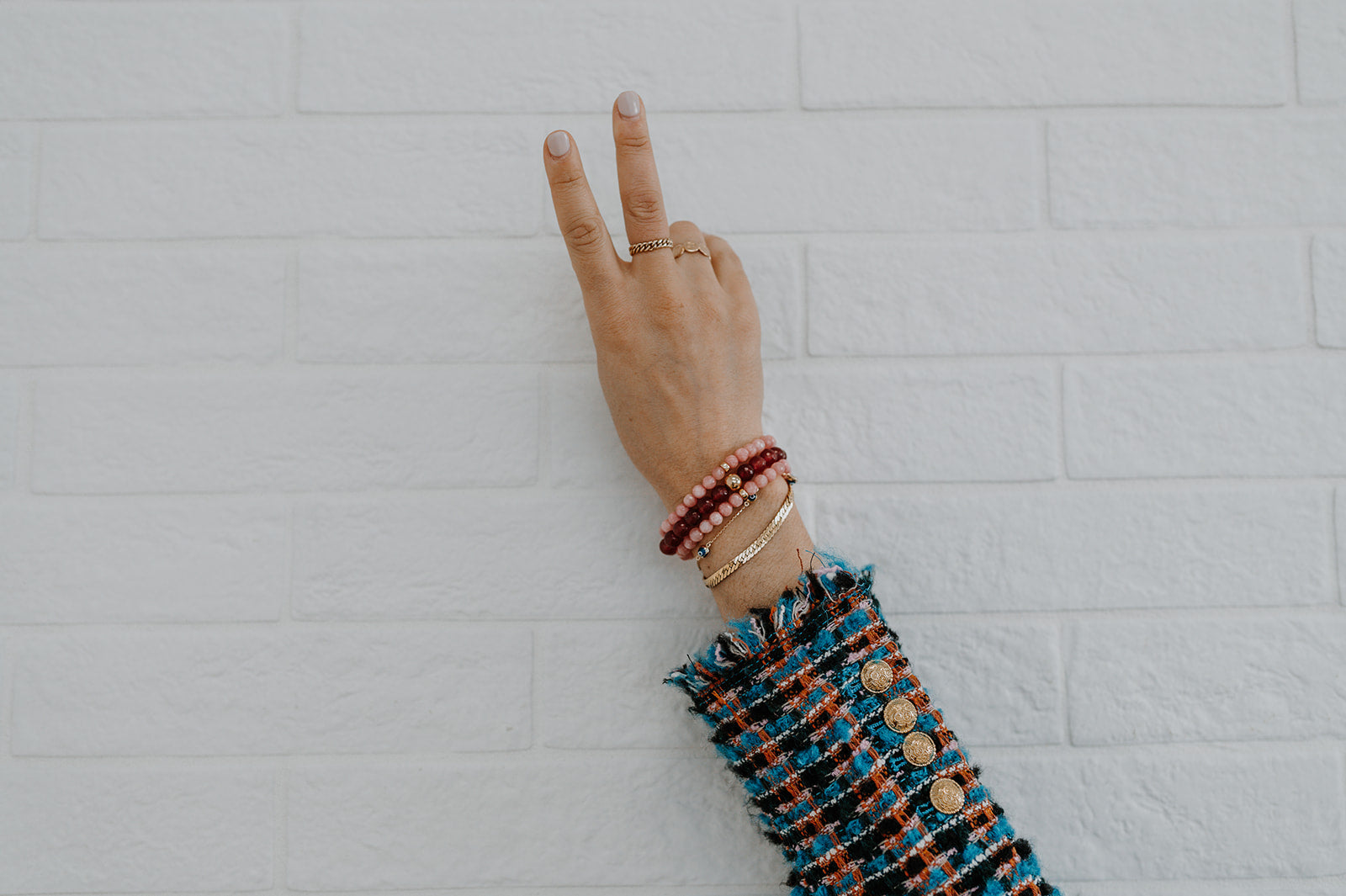 The bracelet is adjustable from 6.5 inches to 7.0 inches. It has three lengths which it can be worn, creating the perfect fit!