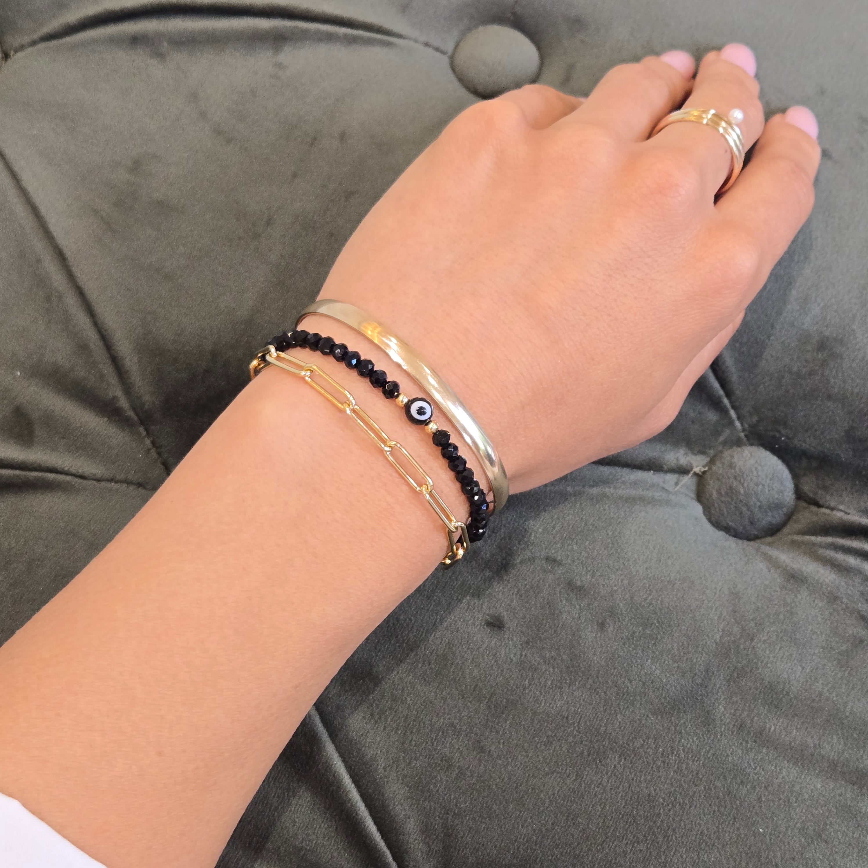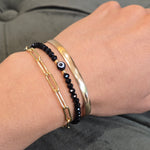 Are you protected from those evil intentions? Adorn yourself with a simple gold filled and crystal evil eye bracelet. Add it to your wrist stack for a super elevated look. Now you'll have protection from all those ill intentions. Also make a wonderful gift to any evil eye lover.