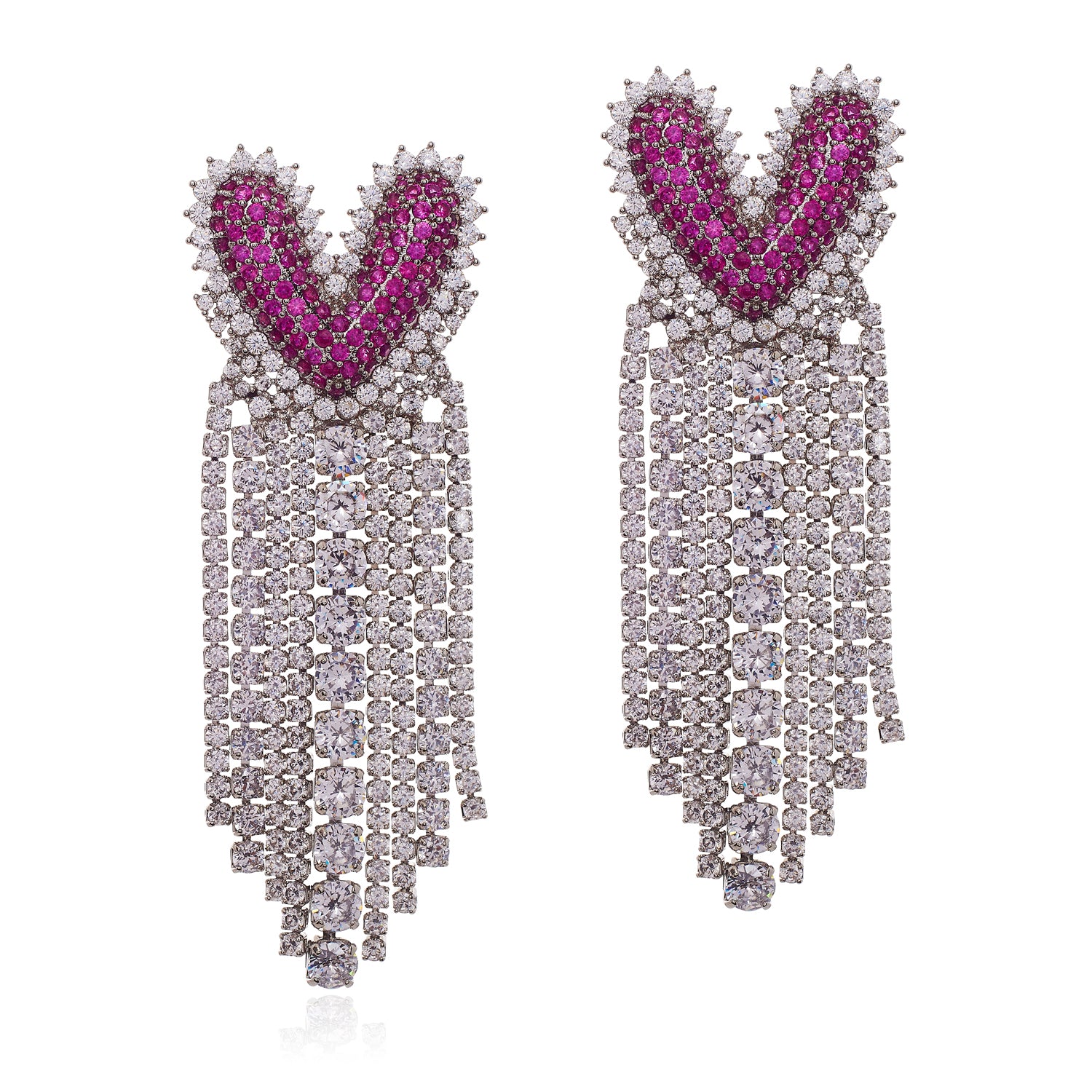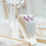 Channel your inner diva! These beauties are absolutely spectacular. An edgy heart shape with cascading cubic zirconia fringe; these earrings are going to light up the room.
