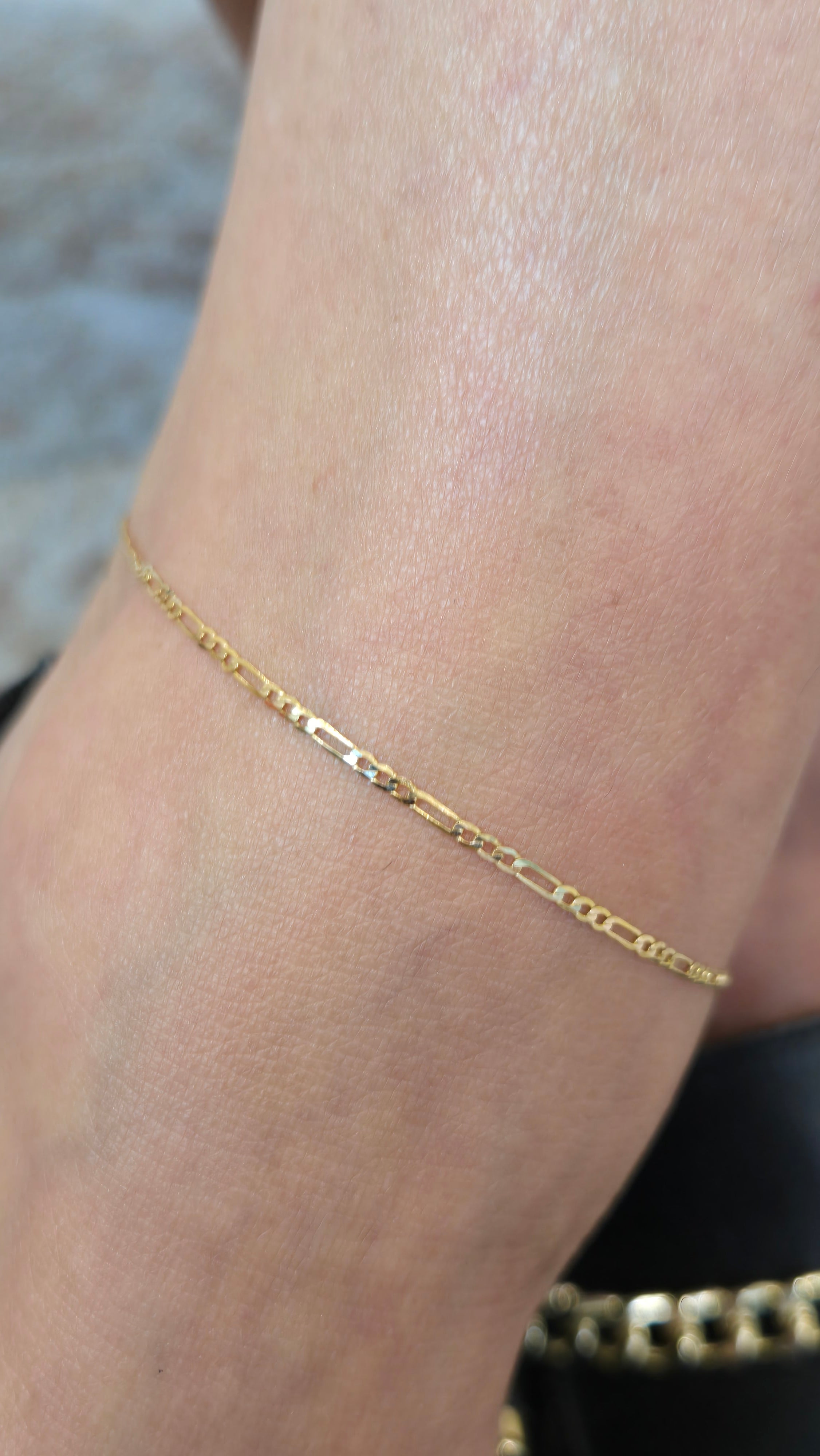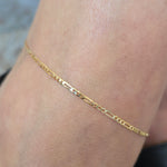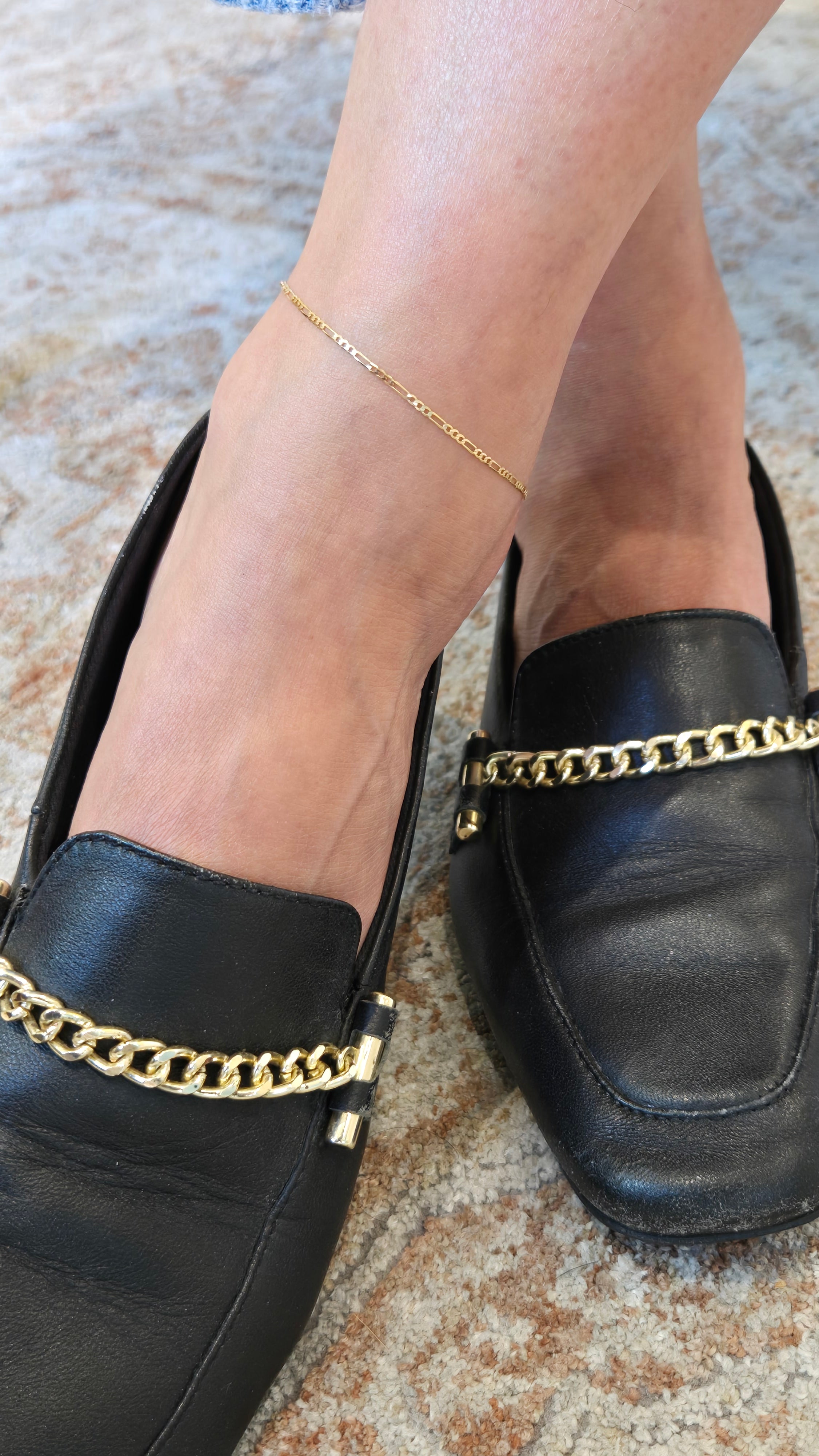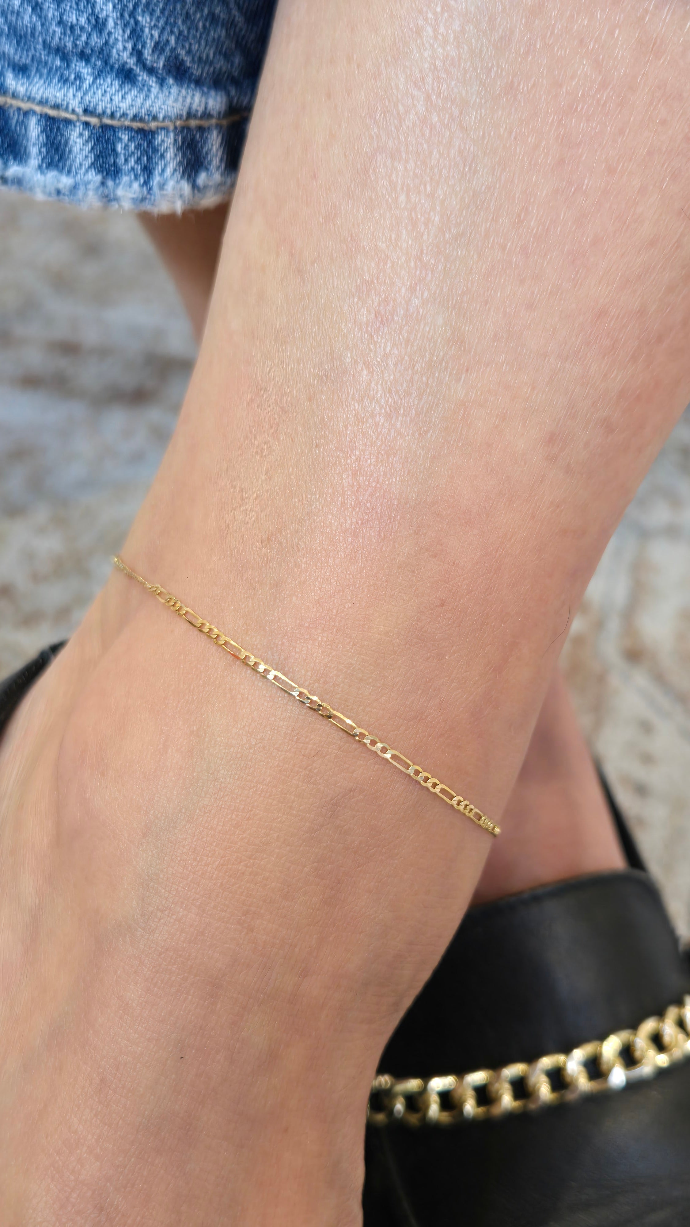 Our 10k gold Figaro Anklet features the iconic link pattern that never goes out of style. Sleek, lightweight, and versatile, it’s perfect for everyday wear—whether layered or worn solo for effortless elegance.
