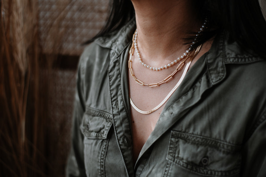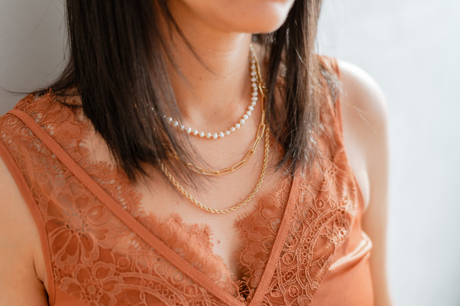 * Model wearing 16" ln the Fiona necklace. Other chains are 18" and 20"