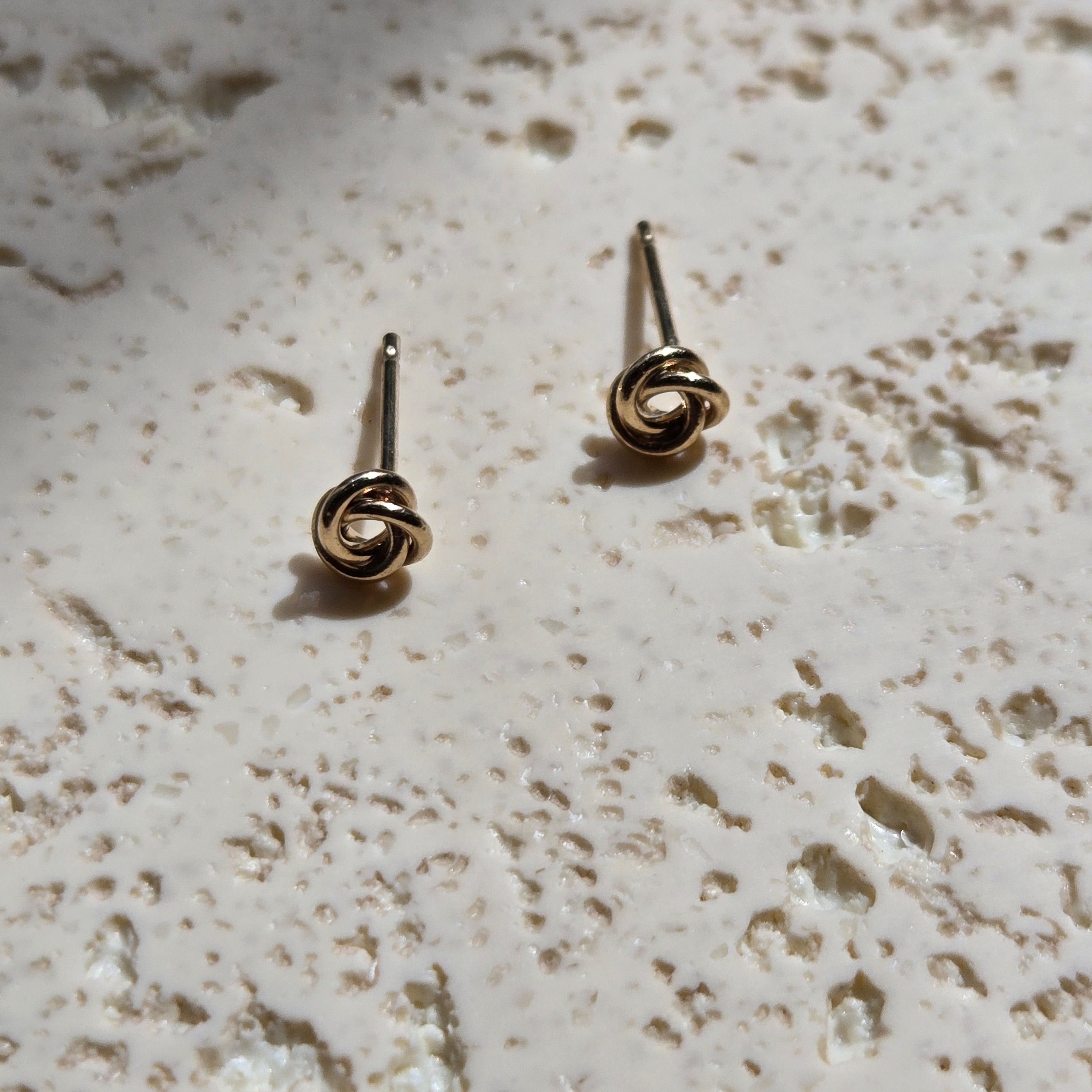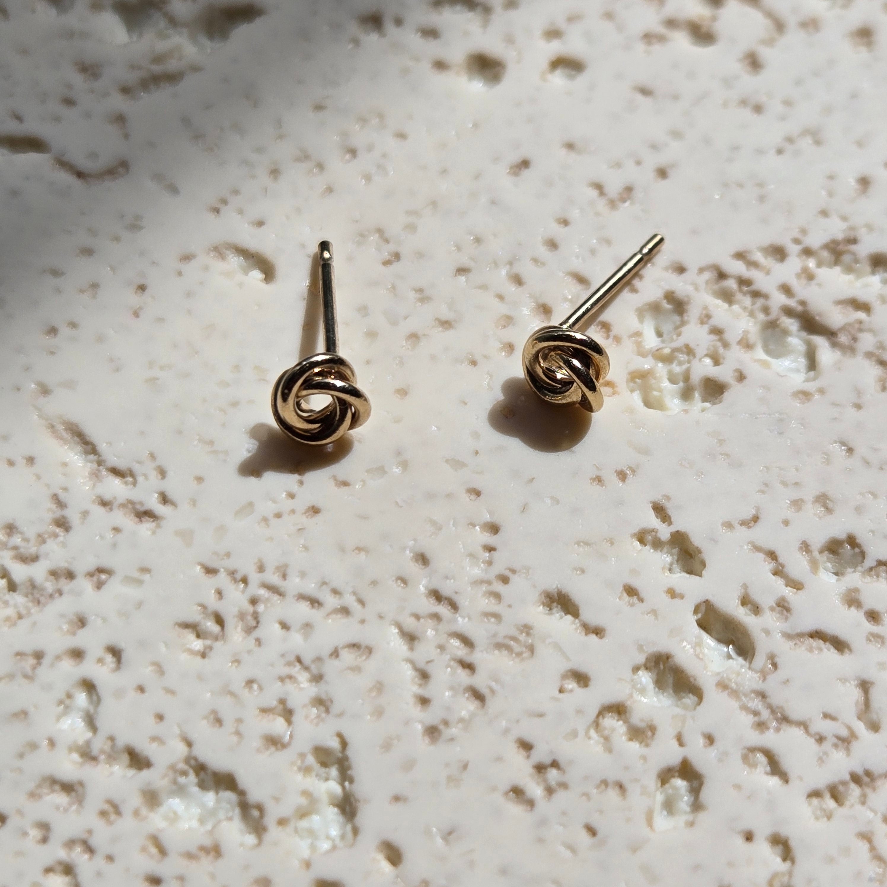 Our Gold-Filled Love Knot Stud Earrings feature an elegant knot design symbolizing love and connection. Sleek, lightweight, and versatile, they’re perfect for everyday wear or layering with other earrings for a chic, polished look.
