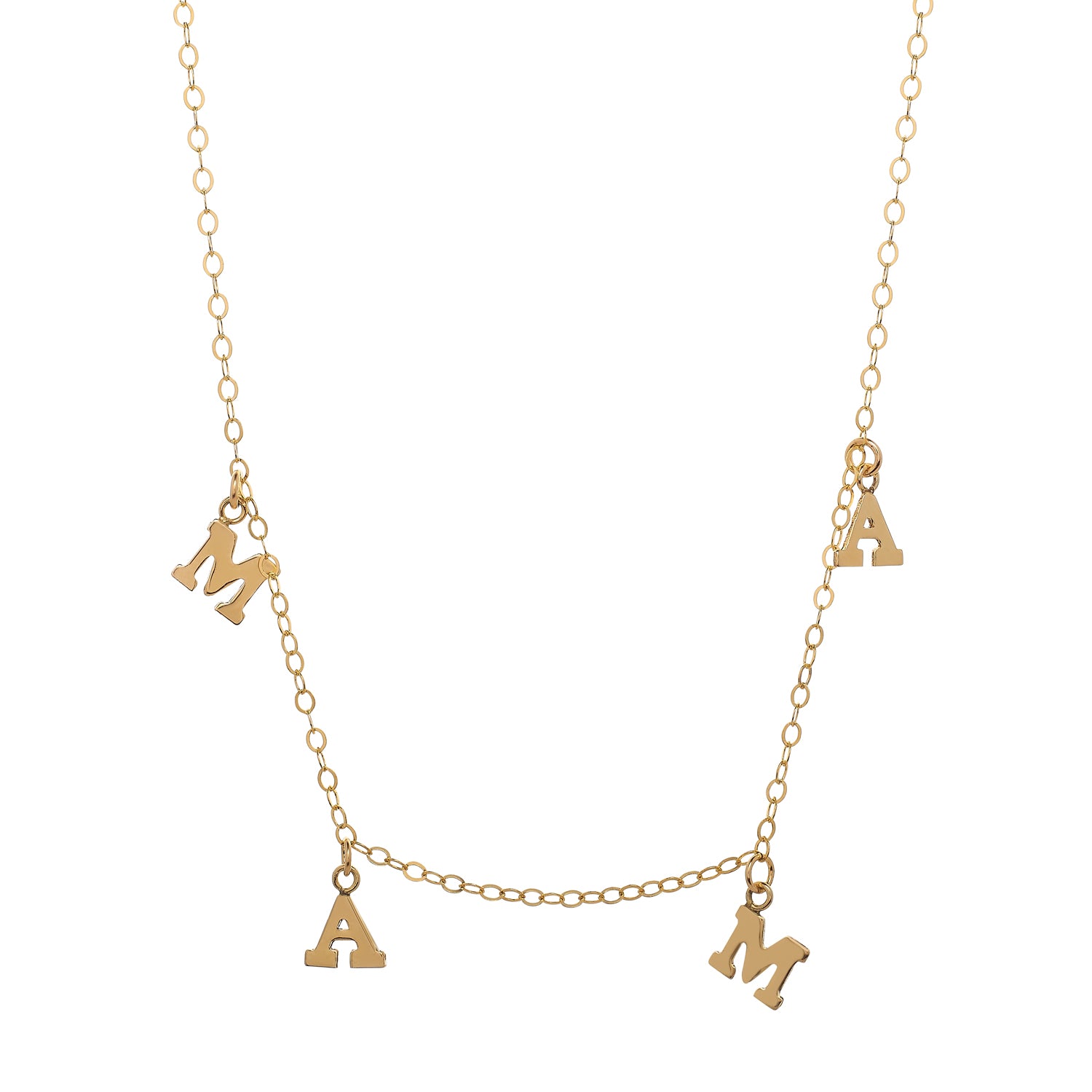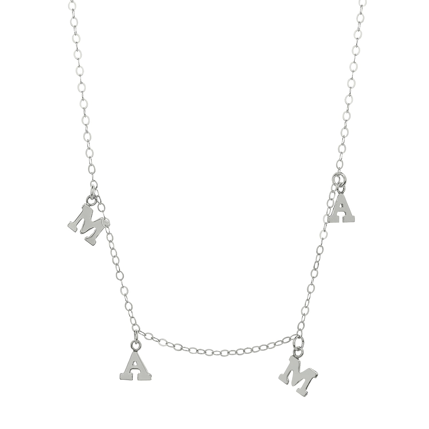 For the fabulous mama in your life. This beautiful shimmery chain features four upper case letter charms which spell (MAMA)