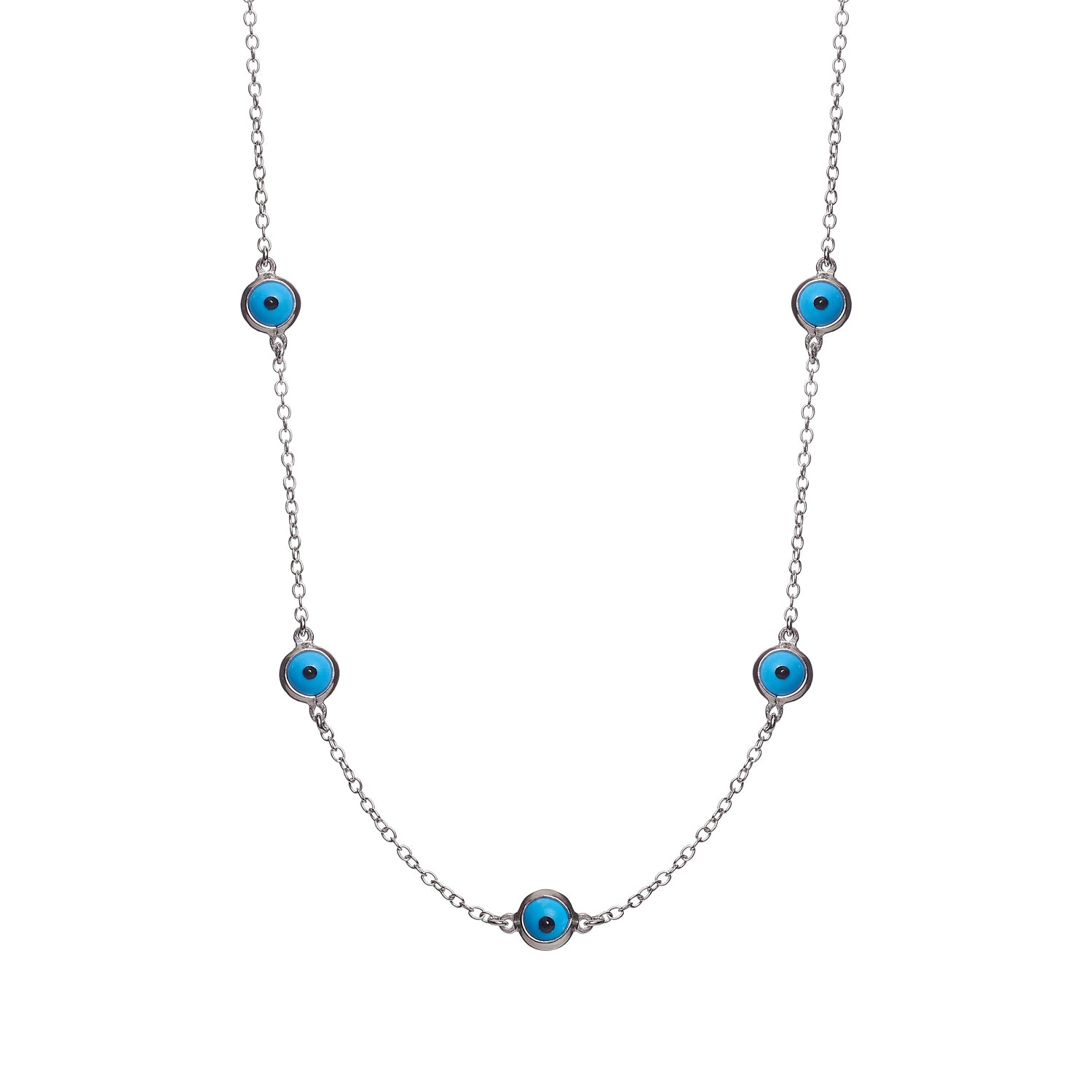 For the major evil eye lover. A beautiful sterling silver strand, adorned with multiple evil eyes. Makes a statement on its own, or use as a layering piece to stack with other chains. A matching bracelet is also available.