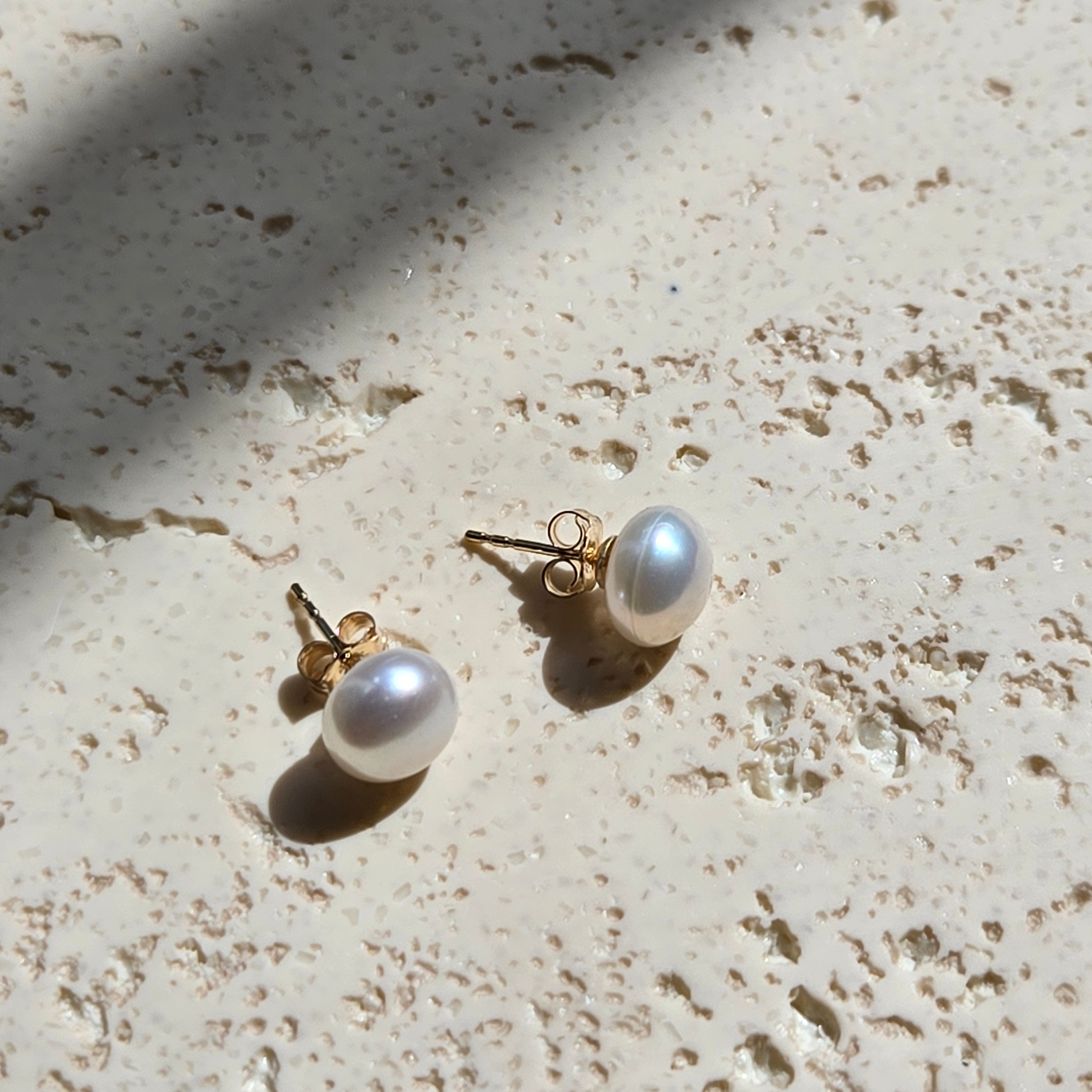 These elegant pearl studs are a stunning addition to your everyday jewelry wardrobe. They offer a subtle yet statement look that says classy and sophisticated.