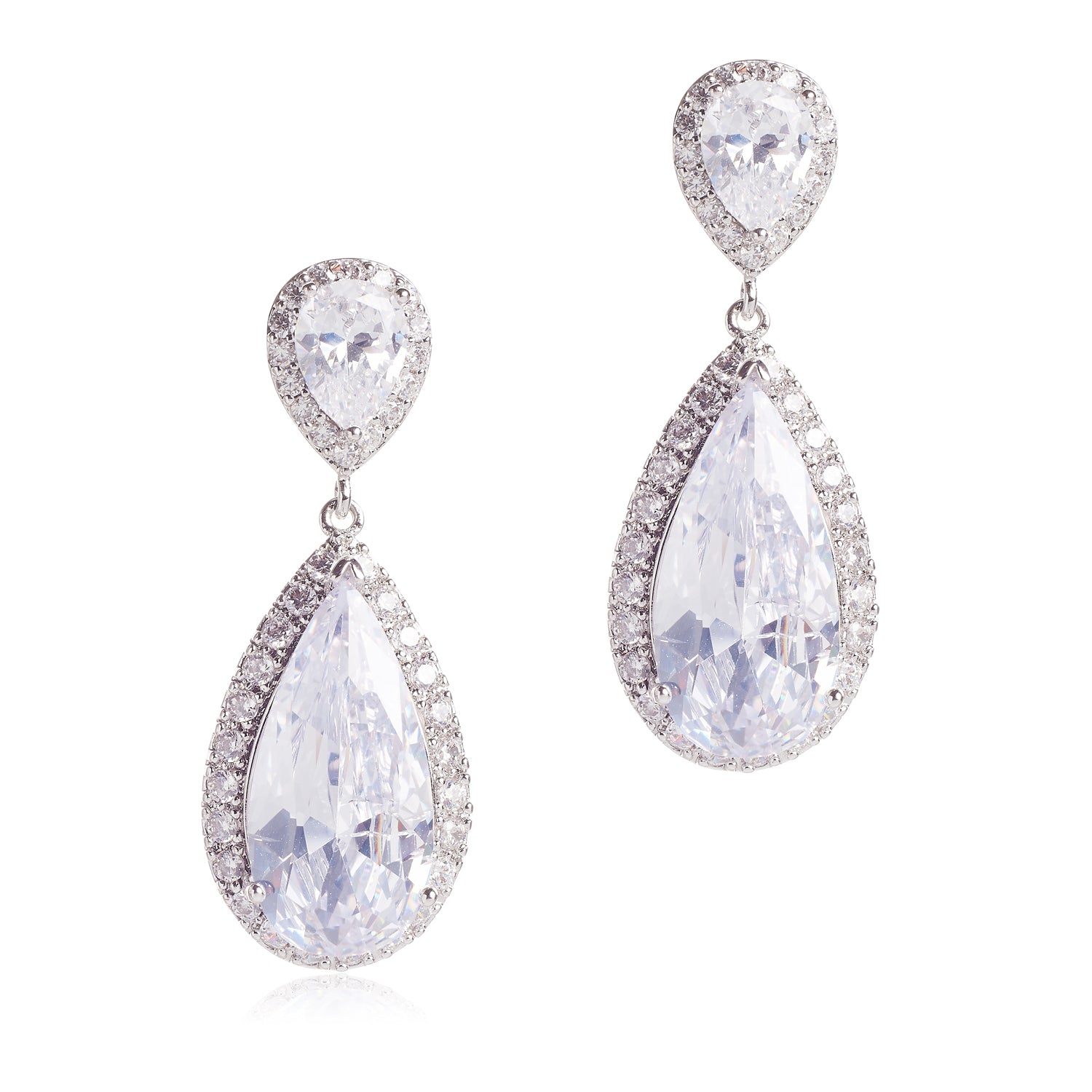 These bold elongated pear shaped drops are framed with tiny pave cubic zirconia stones. These have incredible sparkle and definitely make a luxe statement.