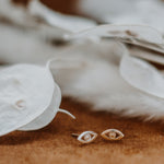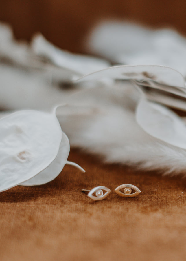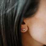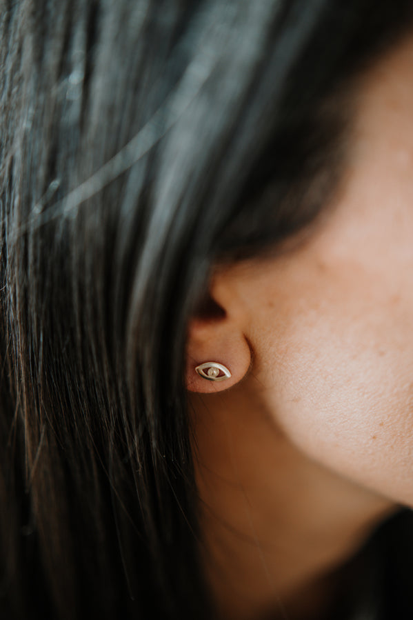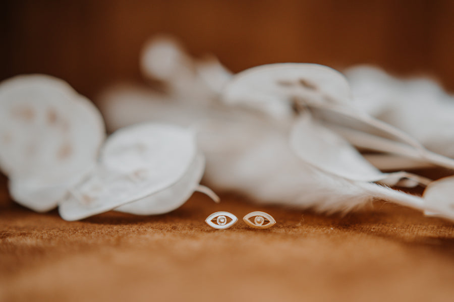 A classy and sophisticated addition to your evil eye collection. These simple and sleek eye shaped studs are a beautiful take on the traditional evil eye.