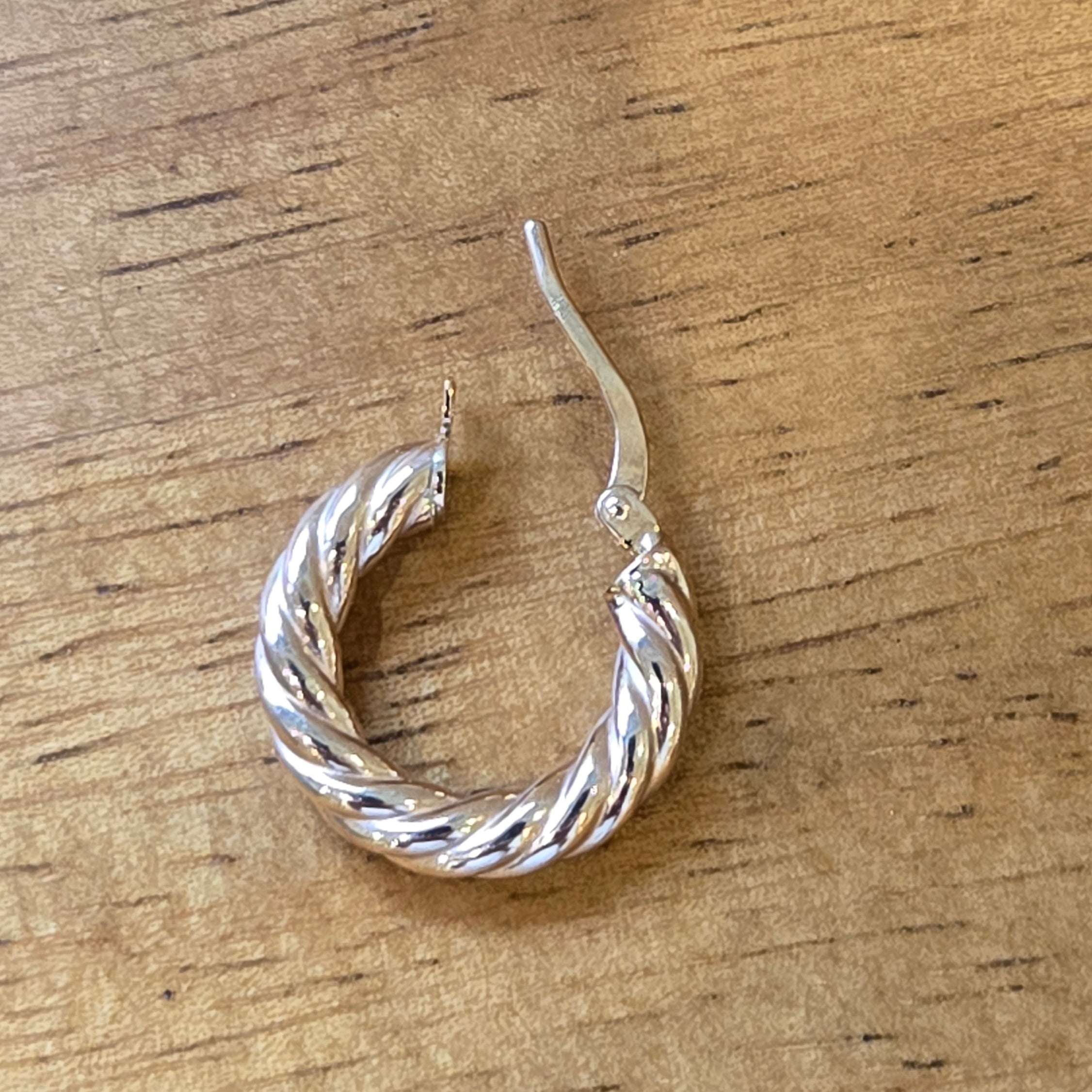 Our 10k gold Small Twist & Click Hoop combines sleek design with easy wear. The twist detail adds a modern touch, while the secure click closure makes them perfect for all-day comfort.
