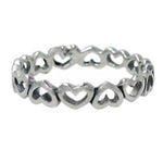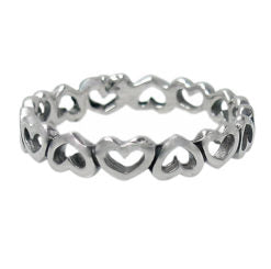 A cute and dainty heart cut out band, with alternating upside down hearts. Made from sterling silver.