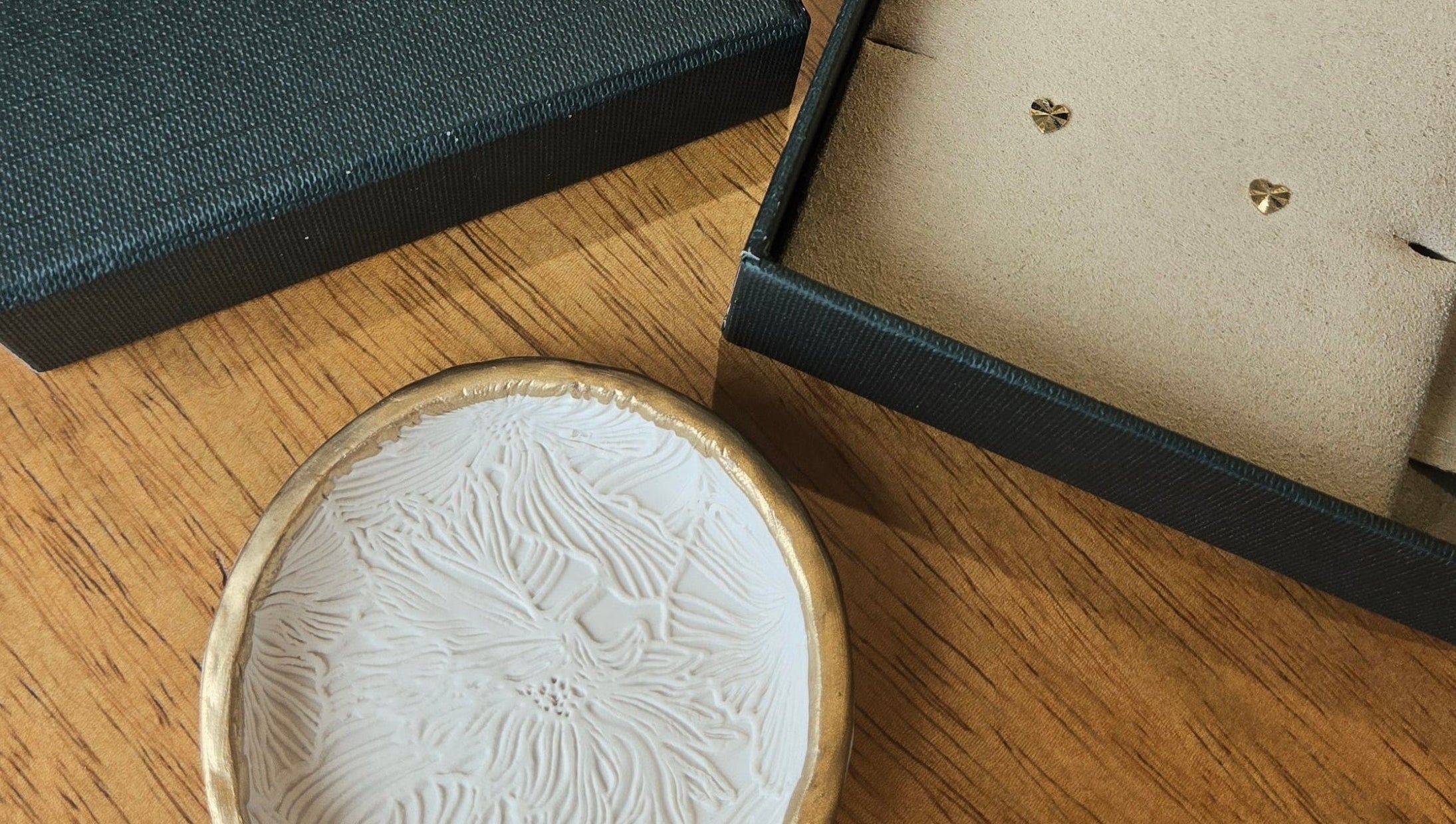 Gift Set - 10K Solid Yellow Gold Stud Earrings & Handmade Ceramic Jewelry Dish