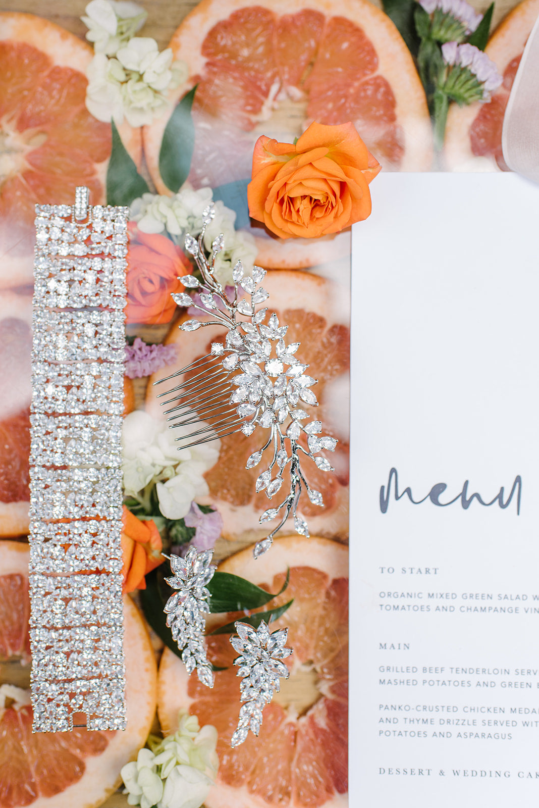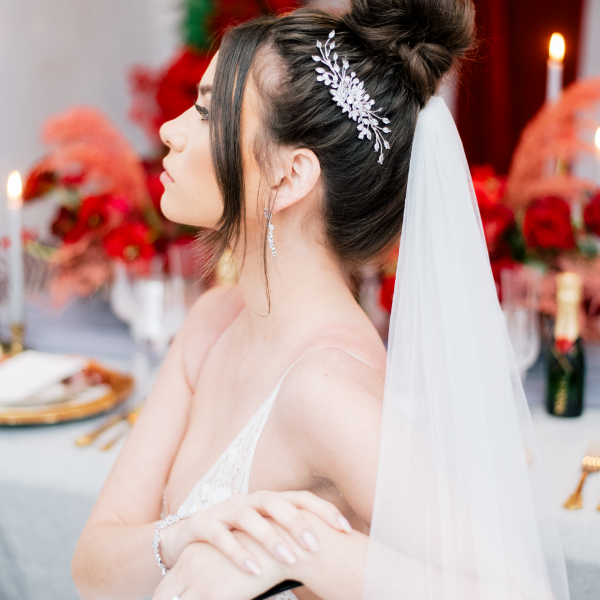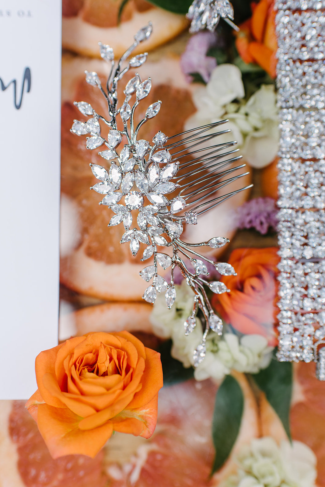 This hair comb features cubic zirconia stones and is quite versatile. It's lovely worn on the side with loose waves, or it can also be incorporated into an updo.