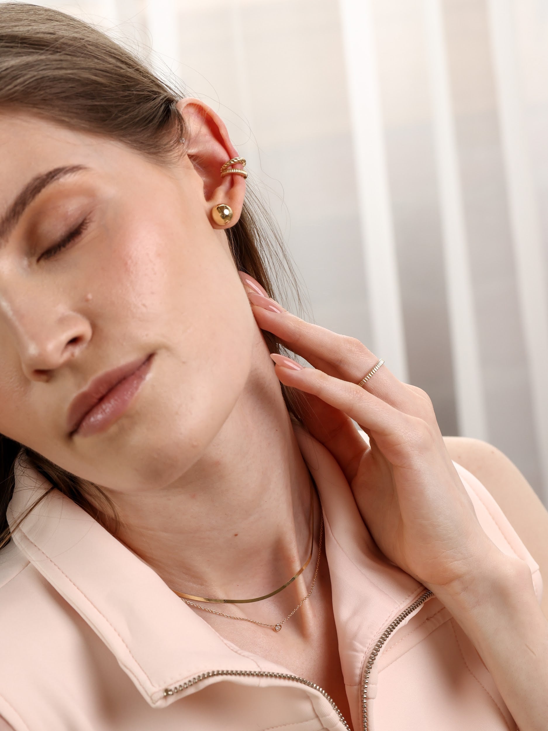 Ear Cuff, a luxurious and sophisticated accessory designed to captivate all generations. The cuff offers a sleek, minimalist wave design that seamlessly blends elegance with modern flair. The innovative hinged mechanism ensures a secure and comfortable fit, making it effortless to wear and perfect for those without pierced ears.